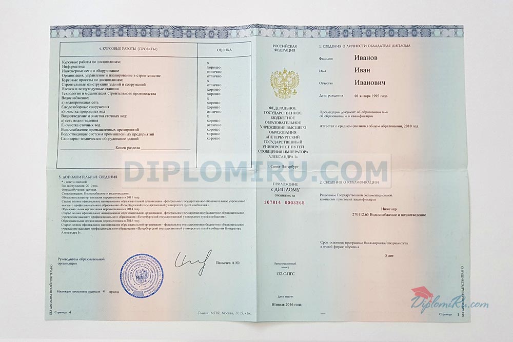 Приложение к диплому ПТУ (при покупке отдельно) 2014-2026 года |