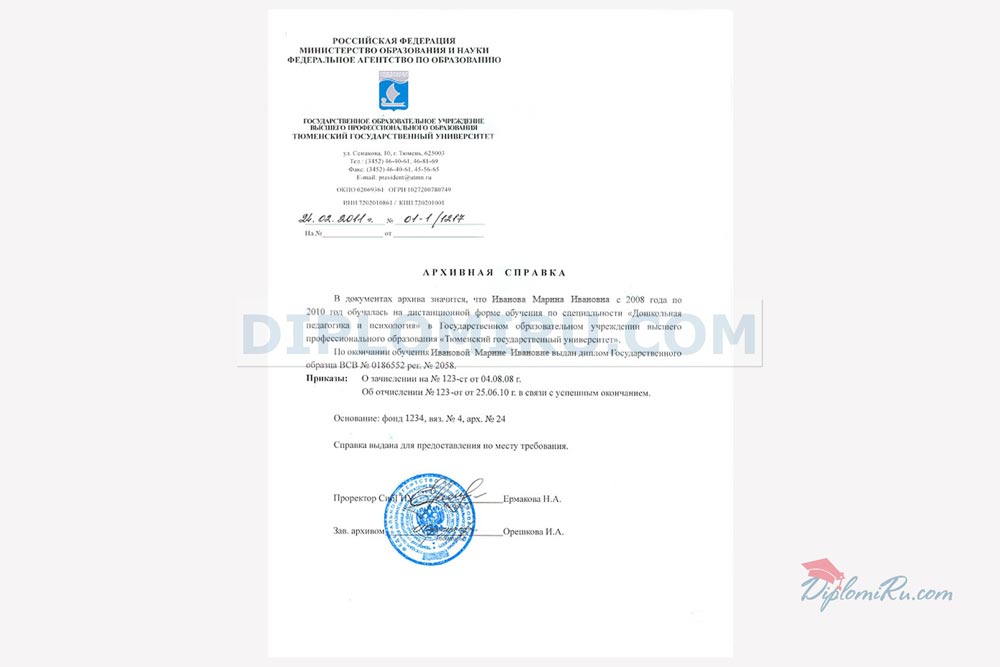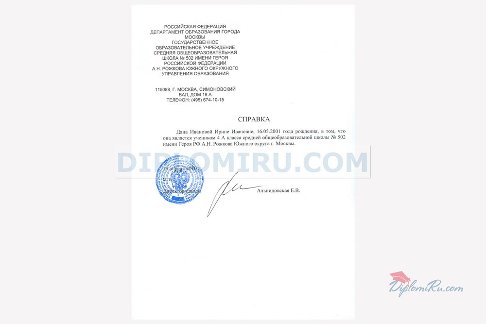 Справка об обучении в ВУЗе, в ССУЗе, в училище, в школе |